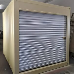 Compact and durable 10ft shipping container with roll-up door. Ideal for tools, inventory, and on-site storage. Weatherproof steel build with marine plywood flooring.