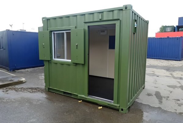 10ft X 8ft Custom Shipping Container Office Key Features: Compact Size – 10ft x 8ft for space-saving placement and easy mobility Versatile Applications — Perfect for guard stations, mobile retail spaces, nail salons, dental offices, storage rooms, or temporary workspaces Rugged Corten Steel Construction — Built to resist rust, weather, and wear for long-term use Customizable Interior — Ready for modifications to suit your business, such as electrical, HVAC, insulation, or shelving Indoor or Outdoor Use — Reliable in various climates and settings Available in Standard Green or Black Color — Aesthetic options to match your brand or environment Cost-Effective Solution — Affordable alternative to building permanent structures