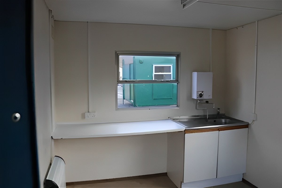 Fully Equipped Kitchenette: Includes sink, taps, under-sink cabinet, water heater, and fitted worktop—ready for food prep and break times.