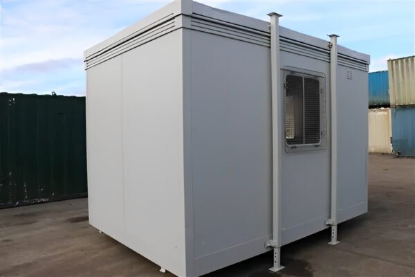 12Ft x 8Ft Steel Anti-Vandal Office Cabin Key Features: Anti-Vandal Steel Construction: Heavy-duty, weather-resistant exterior offers enhanced protection against theft, vandalism, and environmental damage. Open-Plan Office or Meeting Space: Versatile interior layout suitable for use as an office, control room, meeting space, or welfare cabin. Secure Access and Windows: Fitted with a steel door (two deadlocks) and three sliding single-glazed windows with mesh guards and steel shutters for added protection. Fully Insulated Interior: Insulated walls and ceiling ensure a comfortable environment, suitable for year-round use. Ready for Immediate Use: Comes fully wired and electrically tested, with power points, electric convector heater, and fluorescent lighting installed. Stackable Design: Compatible for stacking with other units of the same size ideal for multi-level site setups.