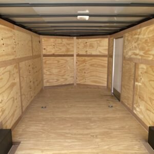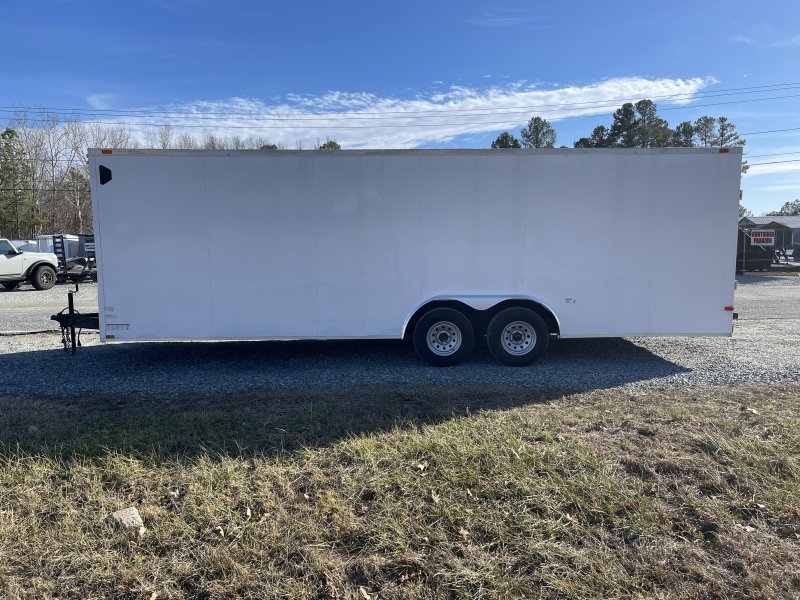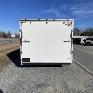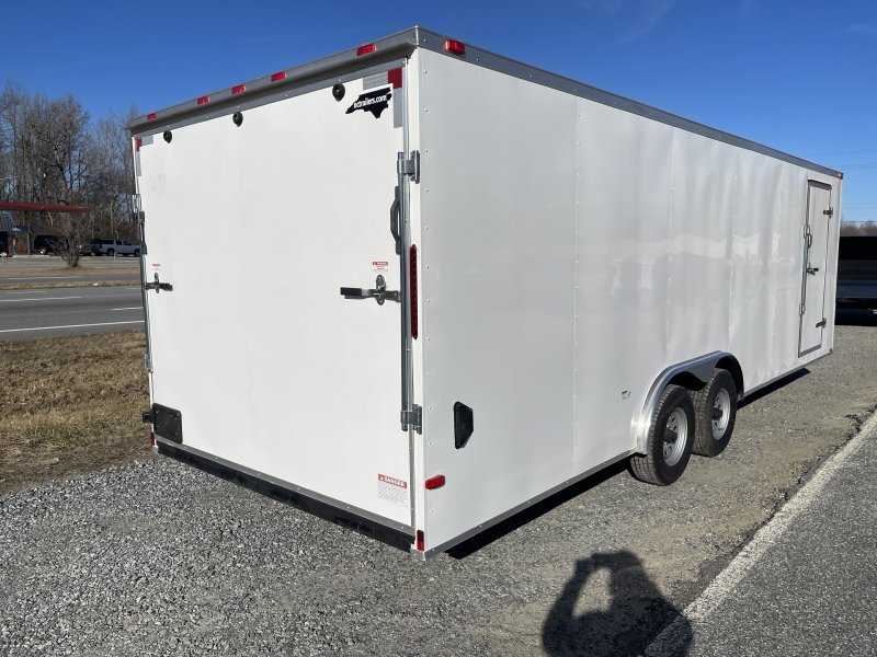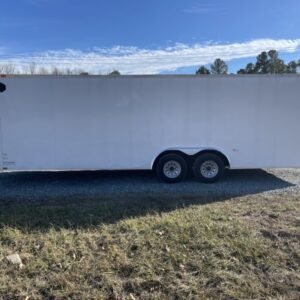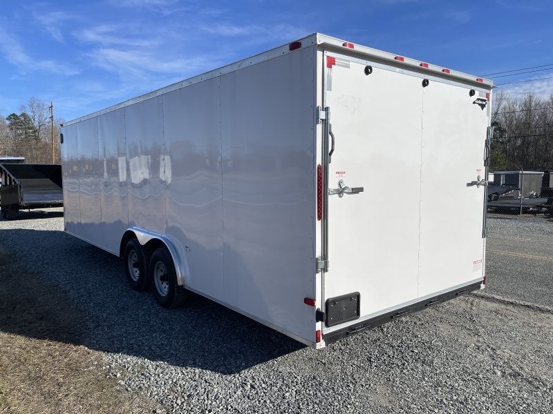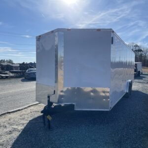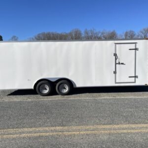This v-nose 8.5×24 enclosed car hauler trailer is a tandem axle with a GVWR rating of 10,000 lb. This model has a side door, rear ramp doors, and a 2000 lb jack.