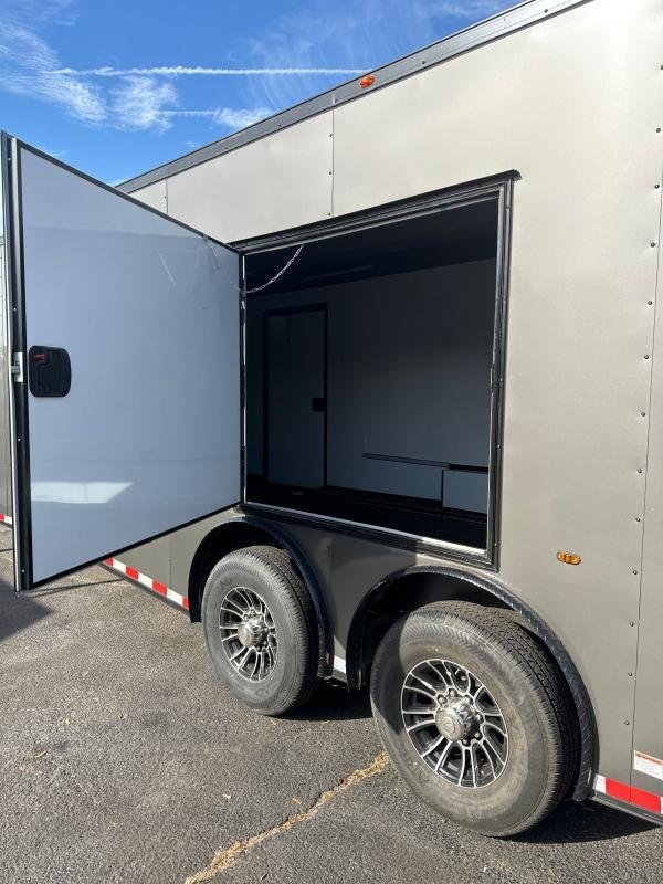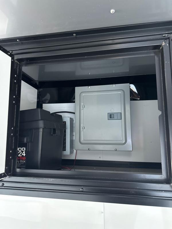 Haul your cargo in style and comfort with this NEW 2024 Cynergy Cargo 8.5x28TA3 enclosed trailer, featuring robust 7K torsion Dexter axles and a powerful 13,500 BTU air conditioner. This spacious 28-foot trailer boasts a sleek Blackout Package with the added convenience of a Sports Package and an escape door.