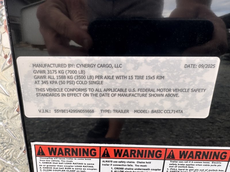 2025 Cynergy 7×14 Enclosed Trailer STD Ramp 7K GVWR