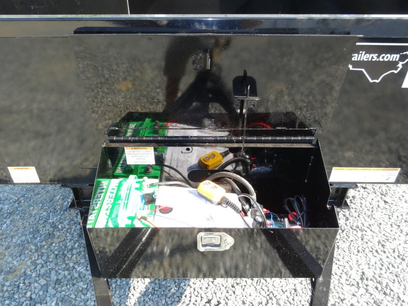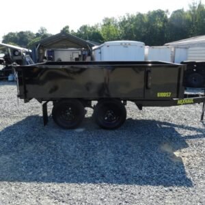 This standard dump trailer has low profile 21″ sides. This unit has a double eye spring suspension, pump with deep cycle battery inside lockable security box, and a 20′ wired hand remote.