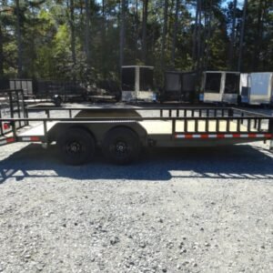 This standard 14-foot length ATV/utility/landscape trailer has a generous 84″ width ideal for home and garden tasks plus removable front side ramps for loading in the front and rear. GVWR rating of 7,000 lb. This trailer features a top rail, 48″ heavy-duty landscape gate, two 3,500 lb brake axles, and a LED lighting package.
