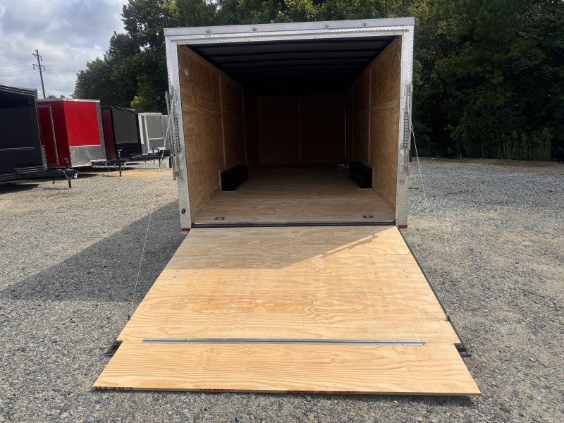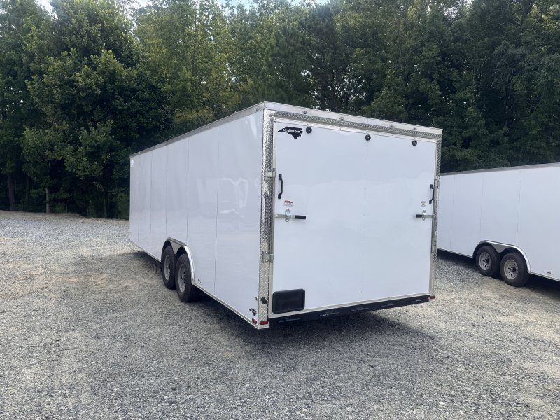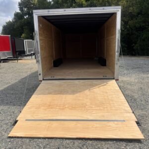 This v-nose 8.5×24 enclosed cargo trailer has a 6’6″ interior height, tandem axles with brakes with a rating of 10,000 lb GVWR. This type of trailer is ideal for light-duty or residential tasks. This model has a side door, a rear ramp door, and a 2000 lb jack.