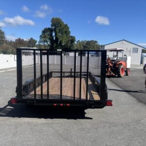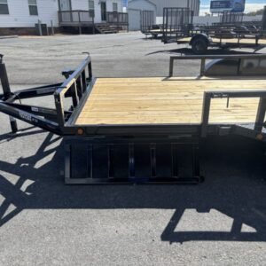 “This standard 14-foot length utility/landscape trailer has a generous 72″” width ideal for home and garden tasks. GVWR rating of 7,160 lb. This trailer features a top rail, 48″” heavy-duty landscape gate, two 3,500 lb brake axles, and a LED lighting package.