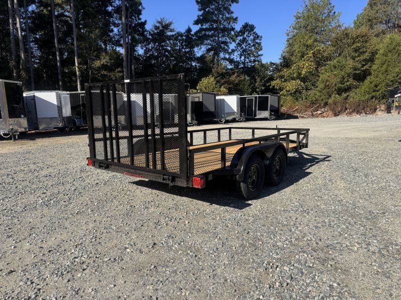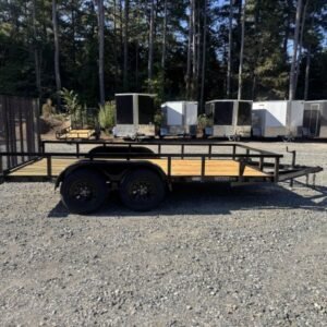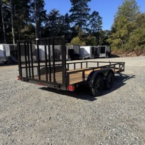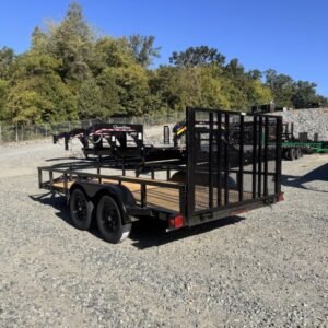 “This HD Elite, 14-foot length utility/landscape trailer has a generous 72″” width ideal for home and garden tasks. GVWR rating of 7, 210 lb. This trailer features a top rail, 48″” heavy-duty landscape gate, two 3,500 lb brake axles, and a LED lighting package.