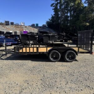 “This HD Elite, 14-foot length utility/landscape trailer has a generous 72″” width ideal for home and garden tasks. GVWR rating of 7, 210 lb. This trailer features a top rail, 48″” heavy-duty landscape gate, two 3,500 lb brake axles, and a LED lighting package.