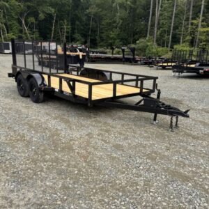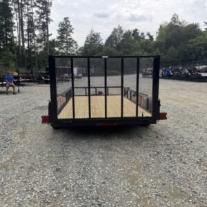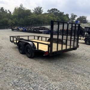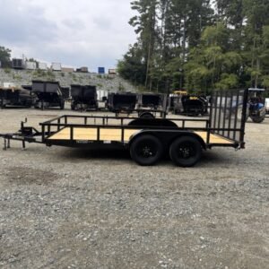 This standard 14-foot length utility/landscape trailer has a generous 78″ width ideal for home and garden tasks. GVWR rating of 5,580 lb. This trailer features a top rail, 48″ heavy-duty landscape gate, two 3,500 lb brake axles, and a LED lighting package.
