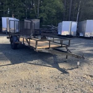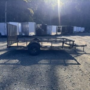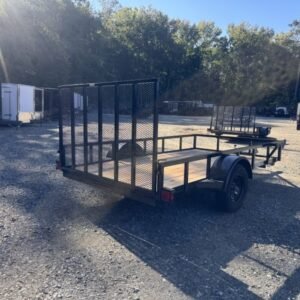 “This standard 12-foot length utility/landscape trailer has a 72″” width ideal for home and garden tasks. GVWR rating of 3000 lb. This trailer features a top rail, 48″” heavy-duty landscape gate, one 3,000 lb Idler axle, and a LED lighting package.
