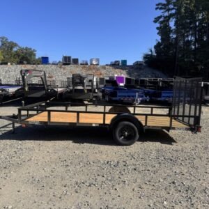 “This standard 14-foot length single-axle utility/landscape trailer has a generous 72″” width ideal for home and garden tasks. GVWR rating of 2,992 lb. This trailer features a top rail, 48″” heavy-duty landscape gate, a 3,000 lb axle, and a LED lighting package.