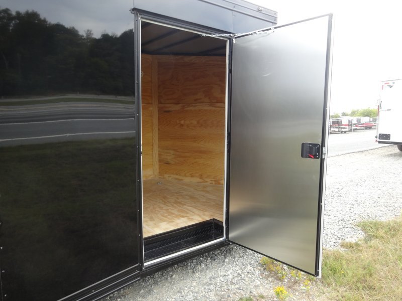This v-nose 8.5×20 enclosed cargo trailer has a 7′ interior height, tandem axles with brakes with a rating of 10,000 lb GVWR. This Pro Series model has a side door, a rear ramp door, 0.080″ polycore sides, a slant v-nose, rear wing, and a 2000 lb jack.