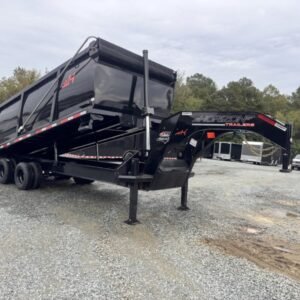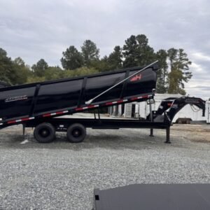 Horizon HZH Tandem Axle/Dual Tire Gooseneck Dump Trailer hauls massive payloads with ease. Designed to handle the needs of professionals in construction, landscaping, and other demanding industries. Dump box with 4-foot sides and a load capacity of 12,600 lbs.