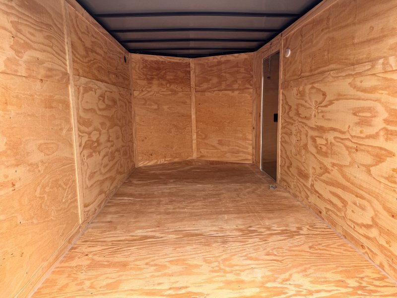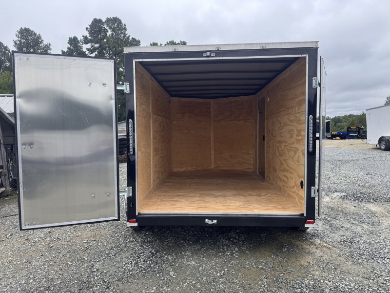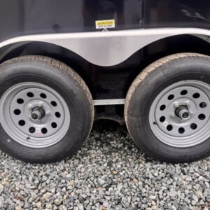 “This v-nose 7×12 enclosed cargo trailer has 6’3″” interior height, a tandem braking axle with a rating of 7,000 lb GVWR. This type of trailer is ideal for light-duty or residential tasks. This model has a side door, rear Barn Doors, and a 2000 lb jack.