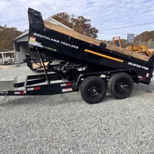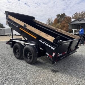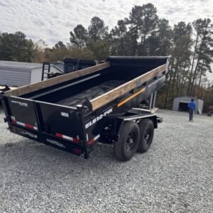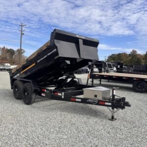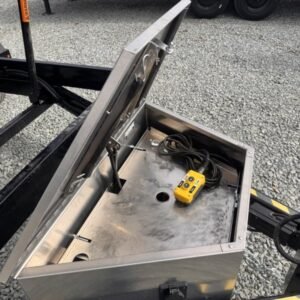 This standard dump trailer has low profile 24″ sides. This unit has a double eye spring suspension, pump with deep cycle battery inside lockable security box, and a 20′ wired hand remote.