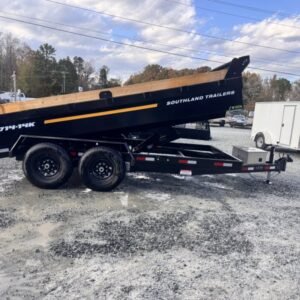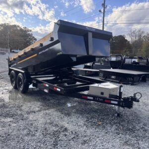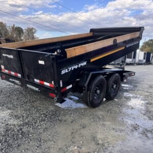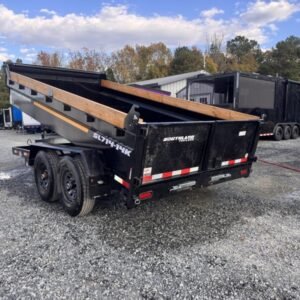 “This deluxe 84×14 dump trailer comes with ramps. This dump trailer has an 84″” box with 24″” tall sides and no stick bottom corners. The dump trailer is a scissor lift hydraulic hybrid. Also includes light weight ramps.