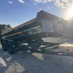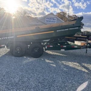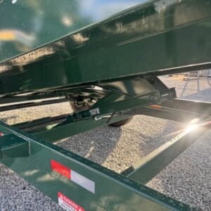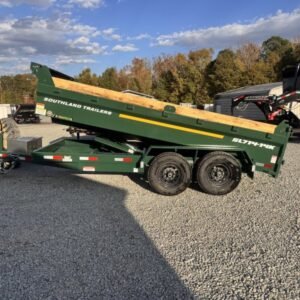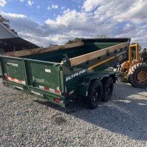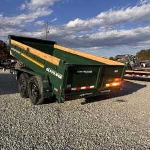 This deluxe 84×14 dump trailer comes with ramps. This dump trailer has an 84″ box with 24″ tall sides and no stick bottom corners. The dump trailer is a scissor lift hydraulic hybrid. Also includes light weight ramps.
