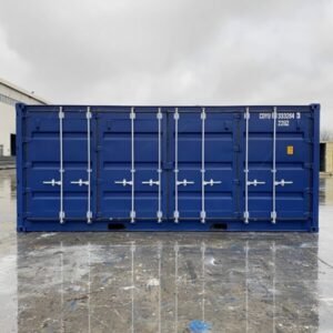 20Ft Open Side/ Full Side Access Container FEATURES NEW – One Trip Only CSC plated (gross weight) max: 24 ton All Corten Steel construction One pair double doors at end & one pair double hinged doors along one side Two locking bars on each door 2 x forklift pockets on each side 28mm Marine Plywood Floor on steel cross members 8 Vents