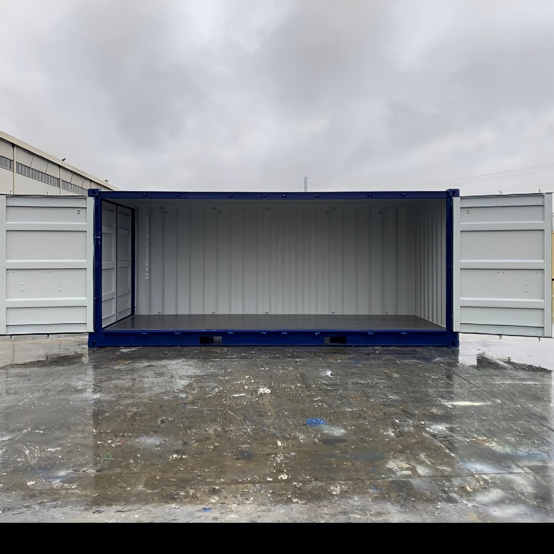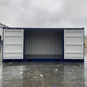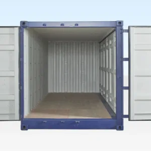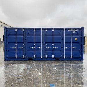 Our 20ft open side shipping containers have a pair of double hinged doors along one side of the container giving full side access – as well as a pair of double doors at the end.