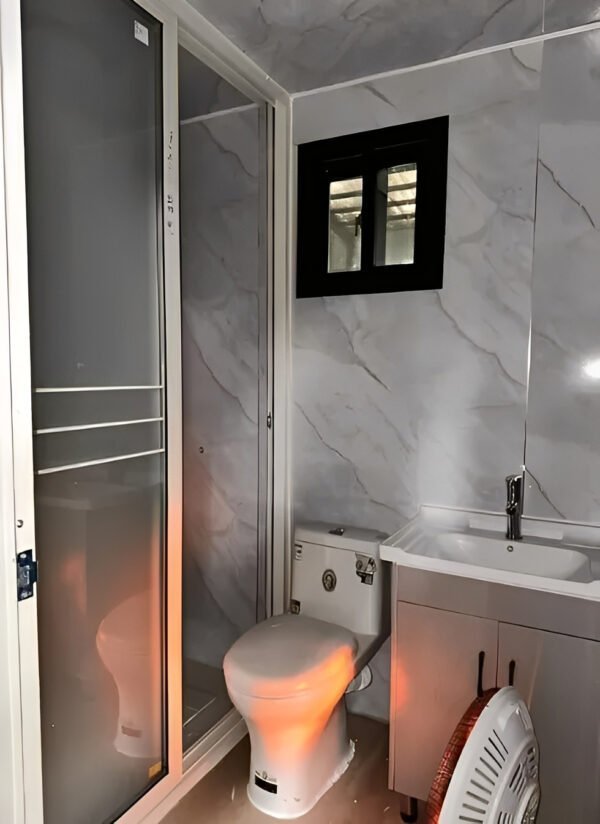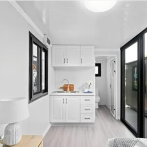 20ft Pre-Assembled Shipping Container Home Specifications Exterior Dimensions (in): 232.0″ (L) × 85.9″ (W) × 97.0″ (H) Exterior Dimensions (ft): ~19.3 ft (L) × 7.2 ft (W) × 8.1 ft (H) Weight: 5,599 lbs Color: Matte Black Material: High-grade metal (Alloy Steel frame + Corrugated Metal body) Style: Pre-Assembled Portable Home Water Resistance Level: Fully Waterproof