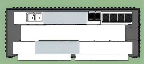 20Ft Shipping Container Shop Specifications Model: 20ft Container Bar External Dimensions: 580 cm (L) × 210 cm (W) × 215 cm (H) (approx. 19 ft x 6.9 ft x 7 ft) Color Options: Customizable (Black, White, Red, etc.) Style: Modern Industrial / Mobile Food Unit Frame Material: Heavy-duty metal (container-grade steel) Interior Layout: Sale counter in front, prep area in the rear