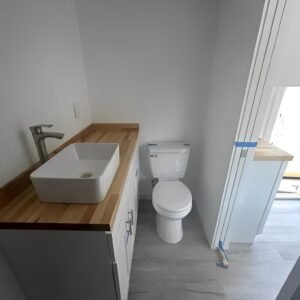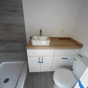 • Kitchen faucet and bathroom plumbing pre-installed