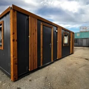 24ft x 10ft Site Office / Marketing Suite – Portable Office, Sales Cabin & Showroom Key Features Condition: Fully Refurbished / Ready to Use Size: 24 ft (L) × 10 ft (W) – spacious open-plan interior Construction: Heavy-duty steel anti-vandal frame for long-lasting protection Exterior Finish: Industrial-grade weatherproof coating Access: 1 × Solid steel anti-vandal entry door 1 × Set of PVC double-glazed sliding doors for bright, easy access Windows: 1 × Large feature PVC window 4 × Standard PVC double-glazed windows for ventilation and natural light