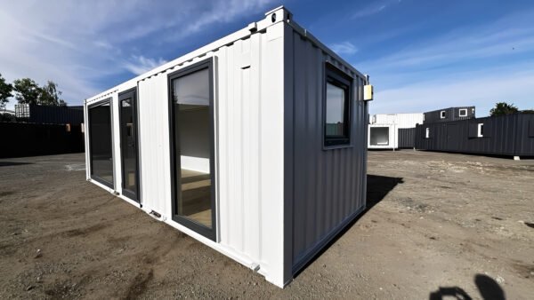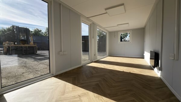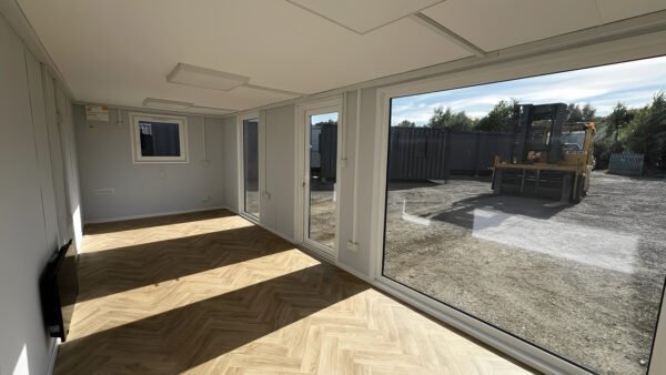 24ft x 9ft Site Office / Marketing Suite – Portable Sales Office or Site Cabin Key Features Condition: Fully Refurbished / Ready to Use Size: 24 ft (L) × 9 ft (W) – Spacious open-plan internal layout Construction: Heavy-duty steel anti-vandal for maximum strength and security Exterior Finish: Durable weather-resistant coating Access Door: 1 × PVC single door to the office with secure locking handle Windows: 4 × PVC double-glazed windows for enhanced light and insulation Flooring: New vinyl flooring – hard-wearing and easy to clean Heating: Wall-mounted electric heater for year-round comfort