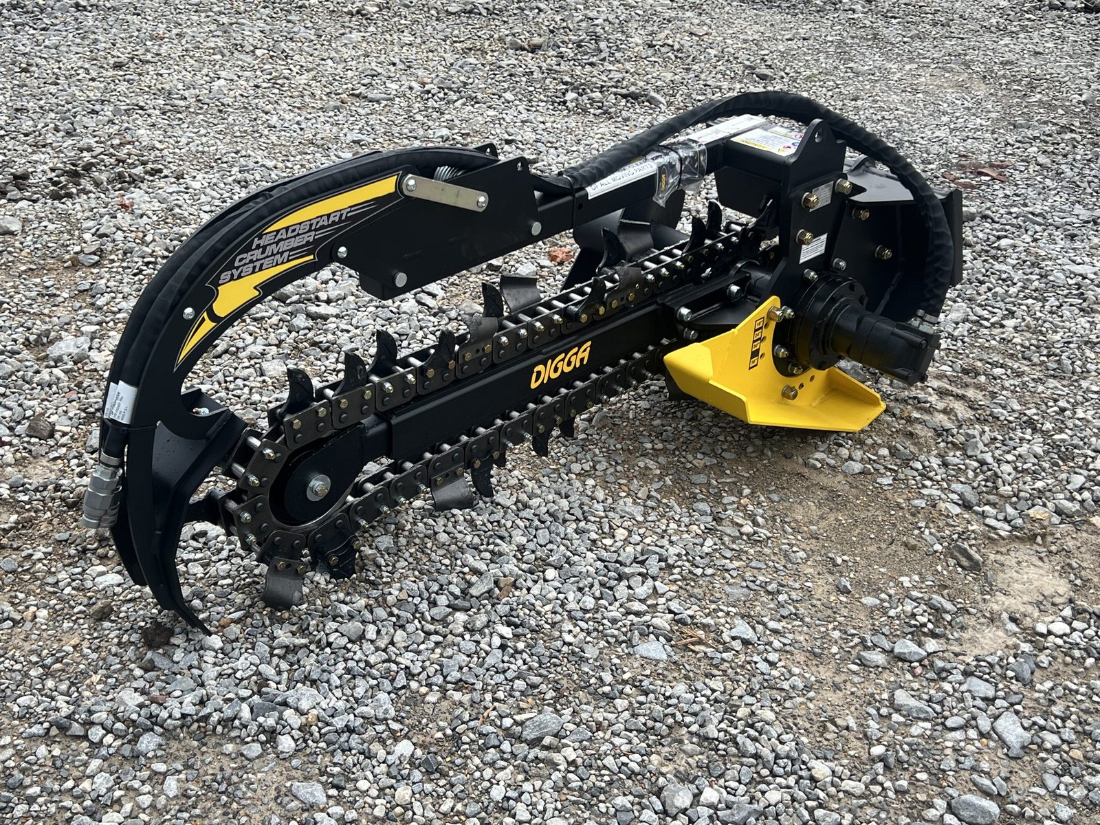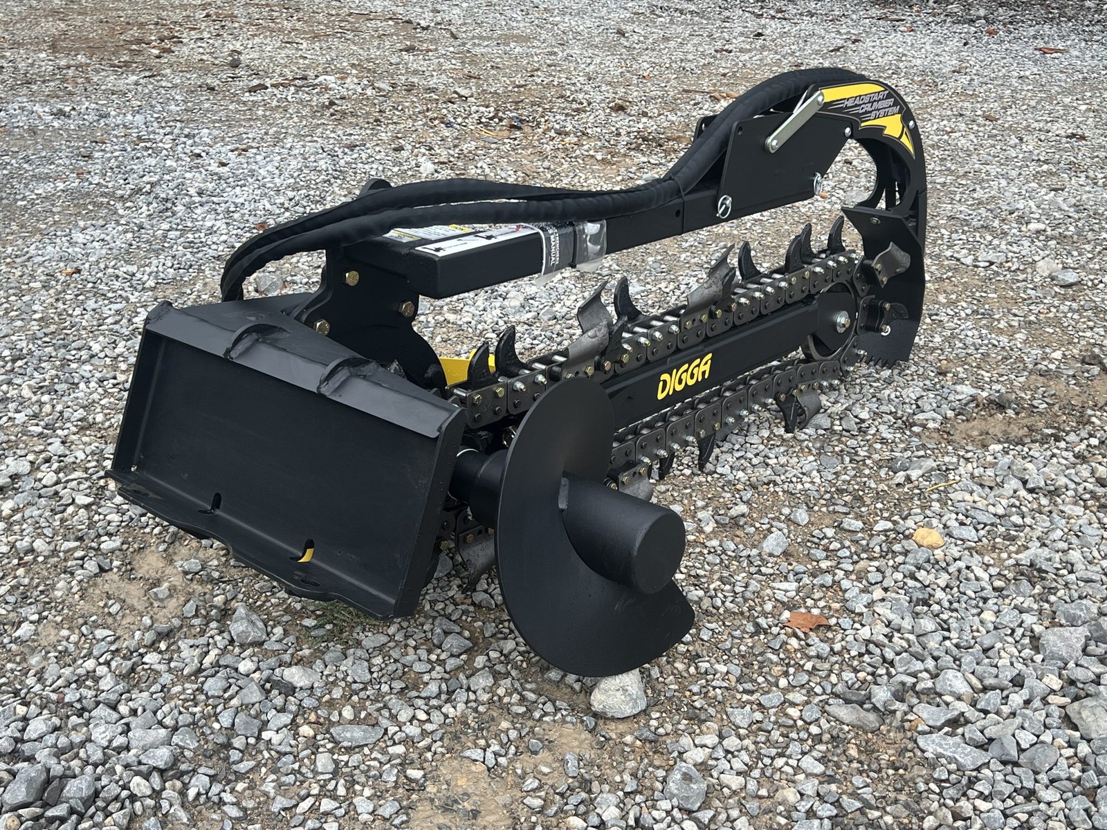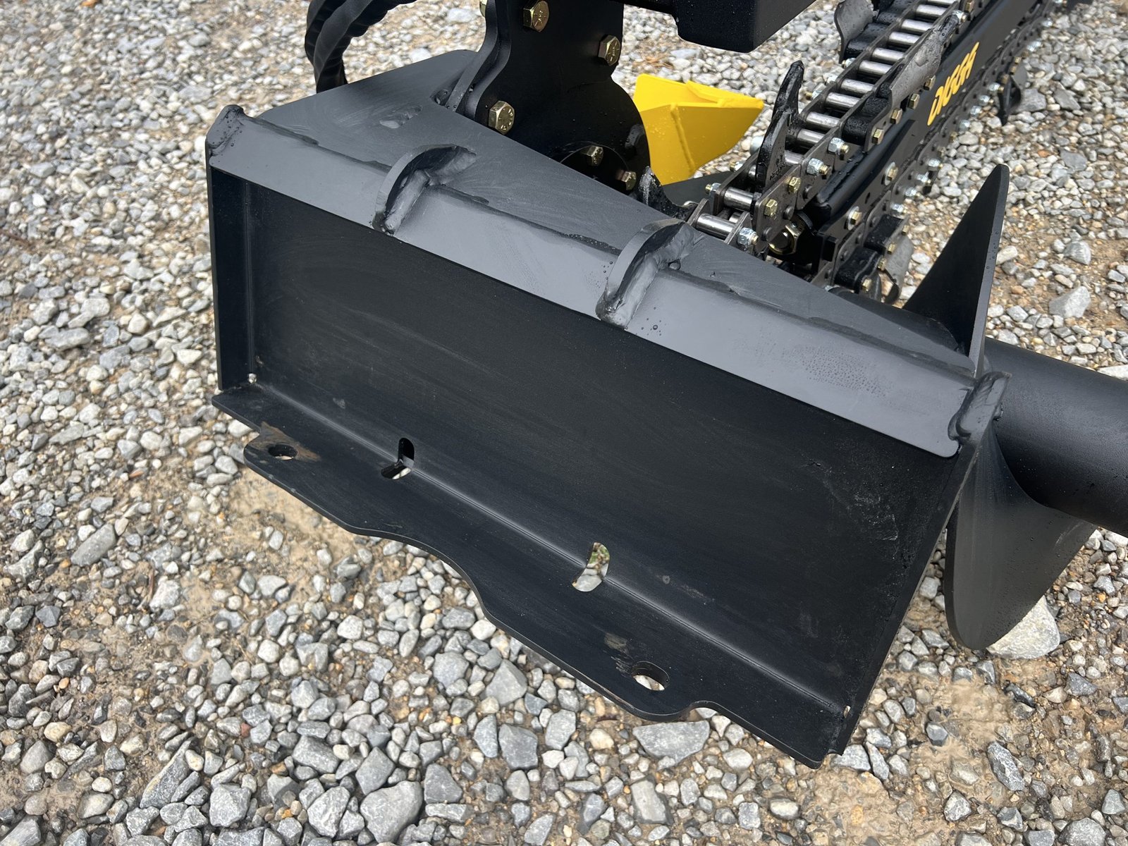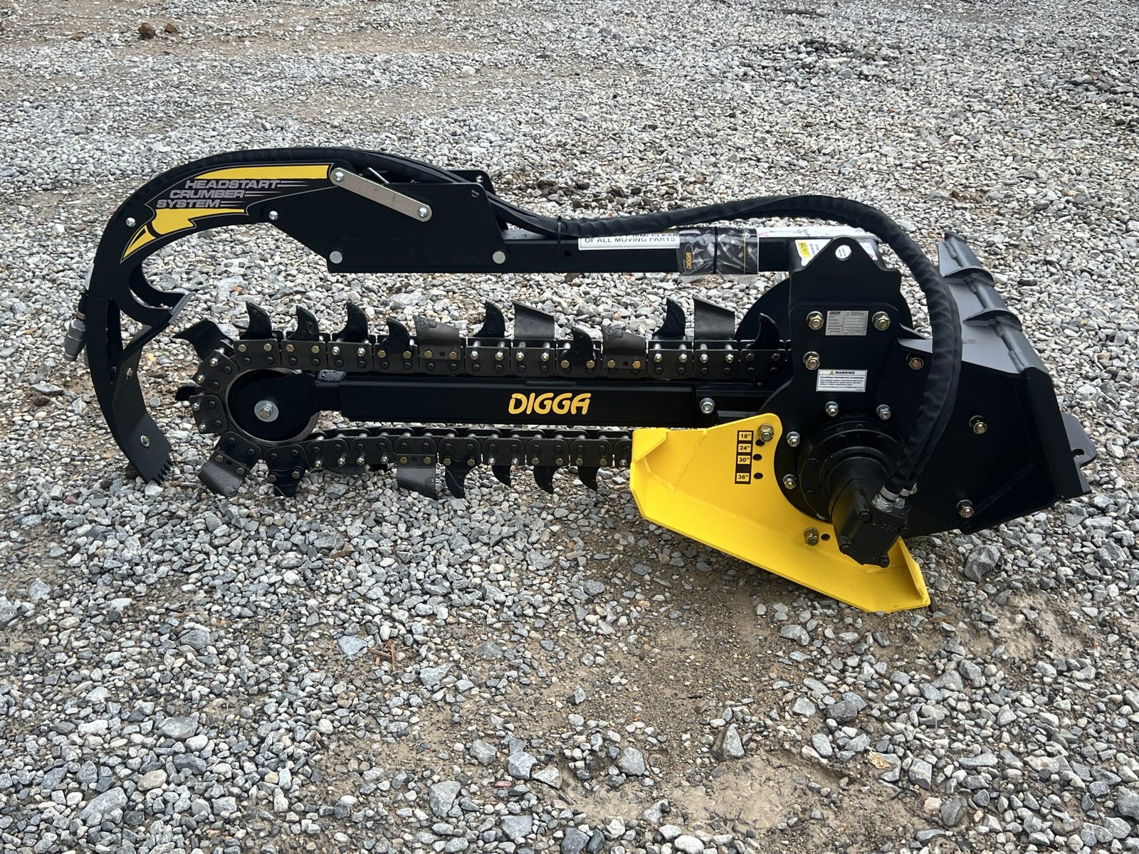 Equipped with Digga’s Combination Chain configuration (cup teeth and tungsten shark teeth), it is suitable for most applications. Will cut through hard soil, roots, soft shale, and rocky conditions. The adjustable depth control foot ensures precise trench depth every time, while the patent-pending crumber bar starts in the trench—eliminating the need for manual resets.