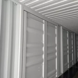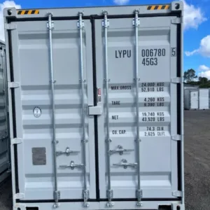 40FT High Cube Storage Shipping Container Conex w/4 Open Side Door 9.5′ Tall Key Benefits High Cube Capacity – Extra headroom for tall or oversized cargo 4 Side Doors – Fast, direct access without disrupting your stored items Durable & Secure – Corten steel structure, weather-sealed, and lockable Modular Potential – Conversion-ready for a range of commercial or residential uses Intermodal Ready – Fits seamlessly into global transport systems