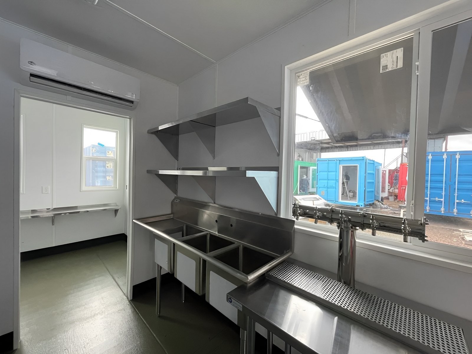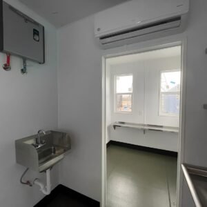 This high-cube unit features a purpose-built Keg Room, spacious Bar/Serving Area, and a convenient Ticket Counter Room, all loaded with commercial-grade appliances, stainless-steel fixtures, integrated refrigeration, and pull-down serving counters. From its sleek vertical-lift windows to epoxy floors and LED lighting, every inch is crafted for efficient service and eye-catching appeal.