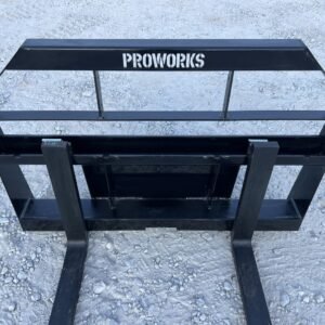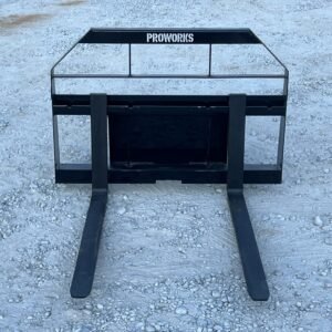 Convert your mini skid steer into a compact forklift with this brand-new set of PROWORKS heavy duty wide rail pallet forks. Built for mini skid steer wheel and track loaders, this set features 42″ long fork tines and a 2,200 lb capacity rating, making it ideal for moving pallets, lumber, and bulky materials.