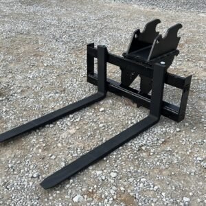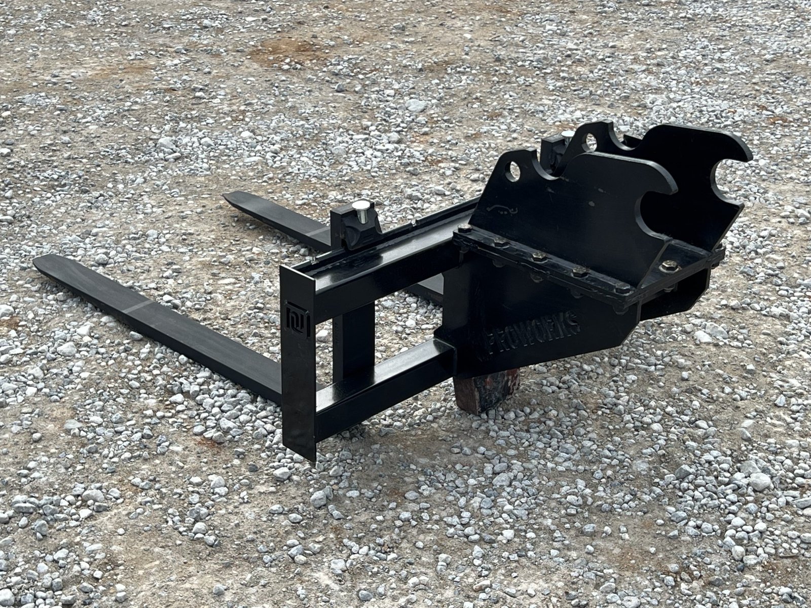 Easily handle pallets and materials with this heavy-duty pallet fork attachment, specifically designed to fit Kubota mini excavators with the Kubota quick attach mounting system. This attachment will fit Kubota U55, KX057 and KX191 mini excavators with the quick attach. Just remove your existing bucket and mount this attachment to move pallets with precision and ease.