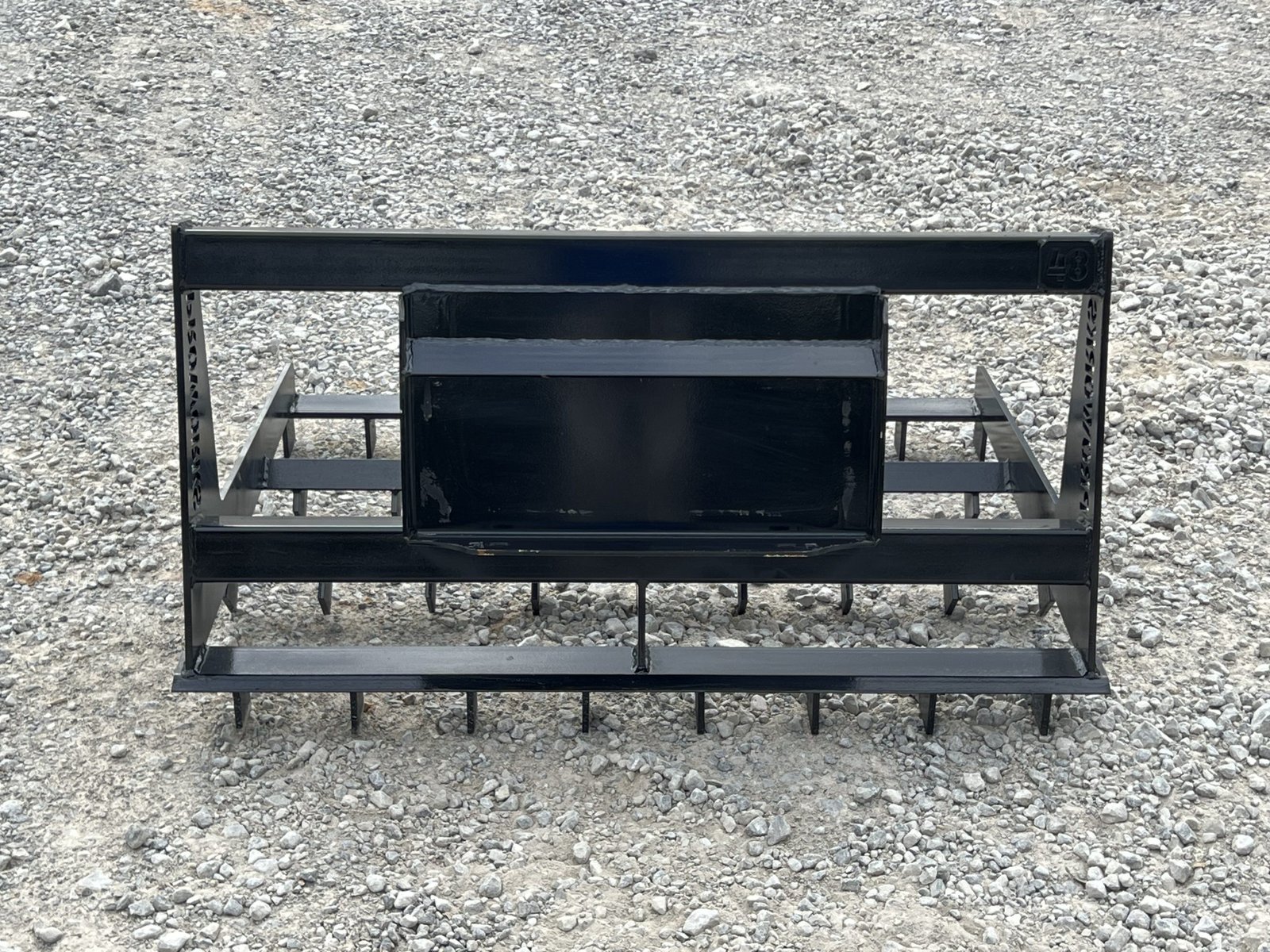 This is a brand new 48″ wide heavy duty land leveler attachment for a mini skid steer loader. The land plane attachment is great for quick and accurate grading. Unit has cutting edges, both front and back, allowing cutting hard surfaces and heavy angled tines in between to sift and spread dirt or gravel to low areas. The addition of the scarifier teeth allows for even better break up of hardened and compacted dirt.This mini universal mounting system is designed to fit the Toro Dingo, Vermeer, Ditch Witch, Finn, Ramrod, Boxer, Thomas and many more machines.