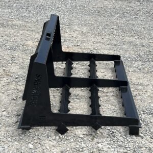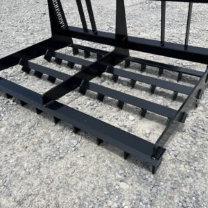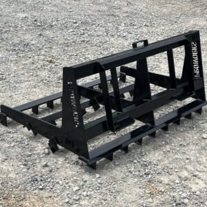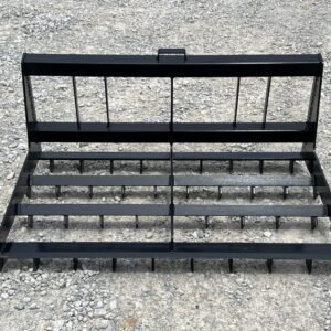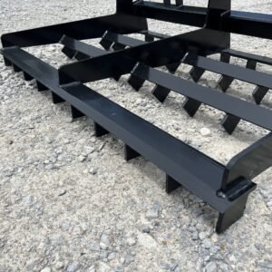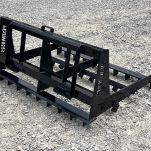 This is a brand new 54″ wide heavy duty land leveler attachment for a mini skid steer loader with the full size Bobcat MT mounting system. The land plane attachment is great for quick and accurate grading. Unit has cutting edges, both front and back, allowing cutting hard surfaces and heavy angled tines in between to sift and spread dirt or gravel to low areas. The addition of the scarifier teeth allows for even better break up of hardened and compacted dirt. It is ideal for grading stone driveways or roads and perfect for seed bed preparation, as well as concrete preparation grading. This will fit Bobcat MT50 MT52 MT55 453 463 and S70 Loaders.