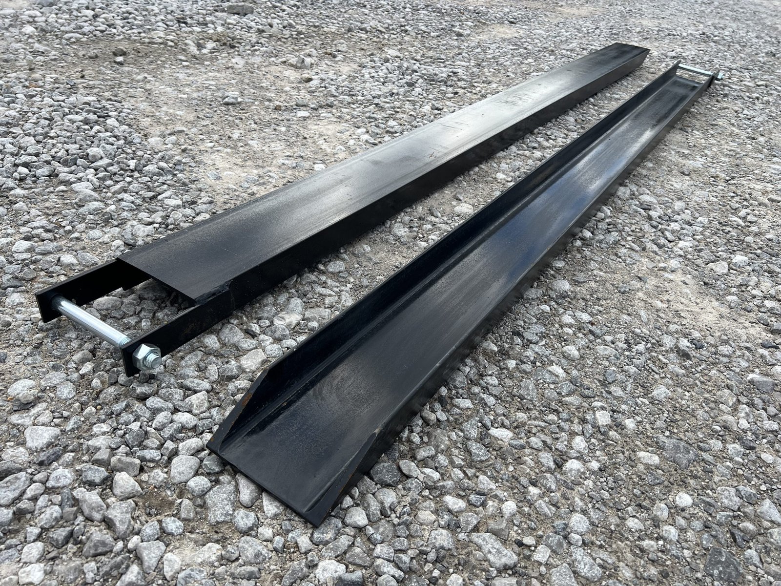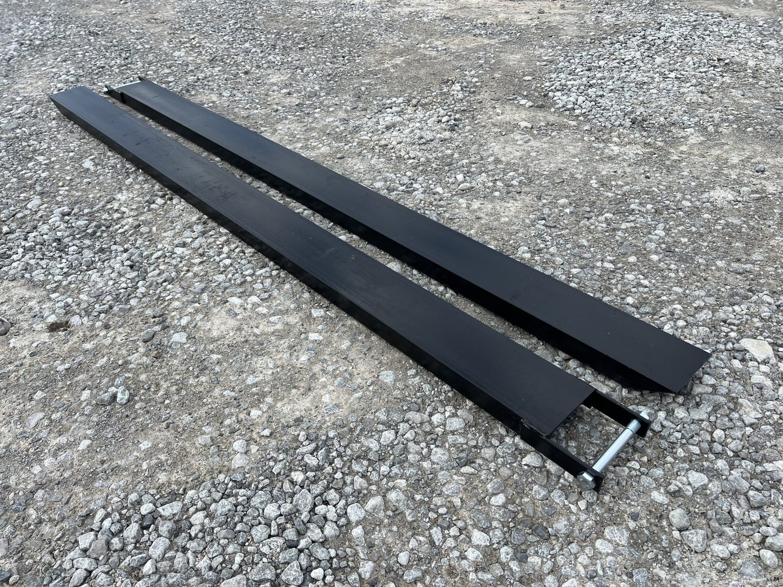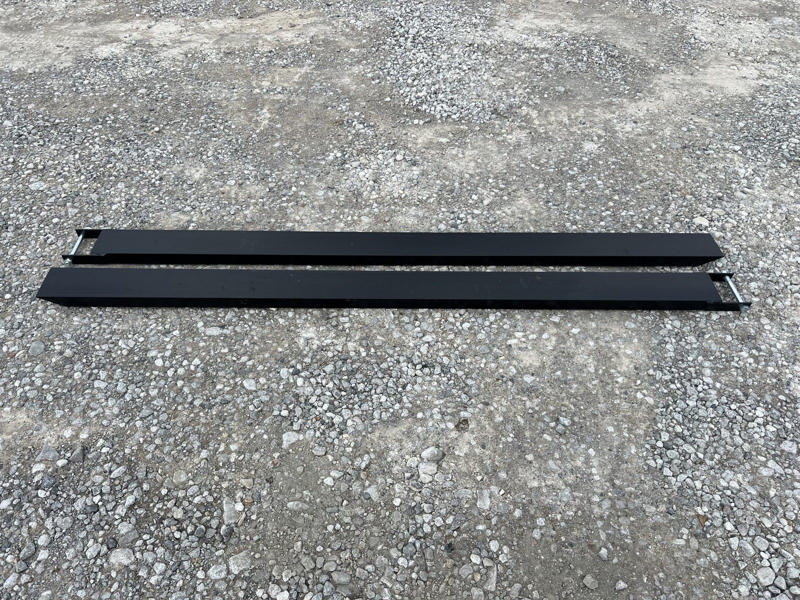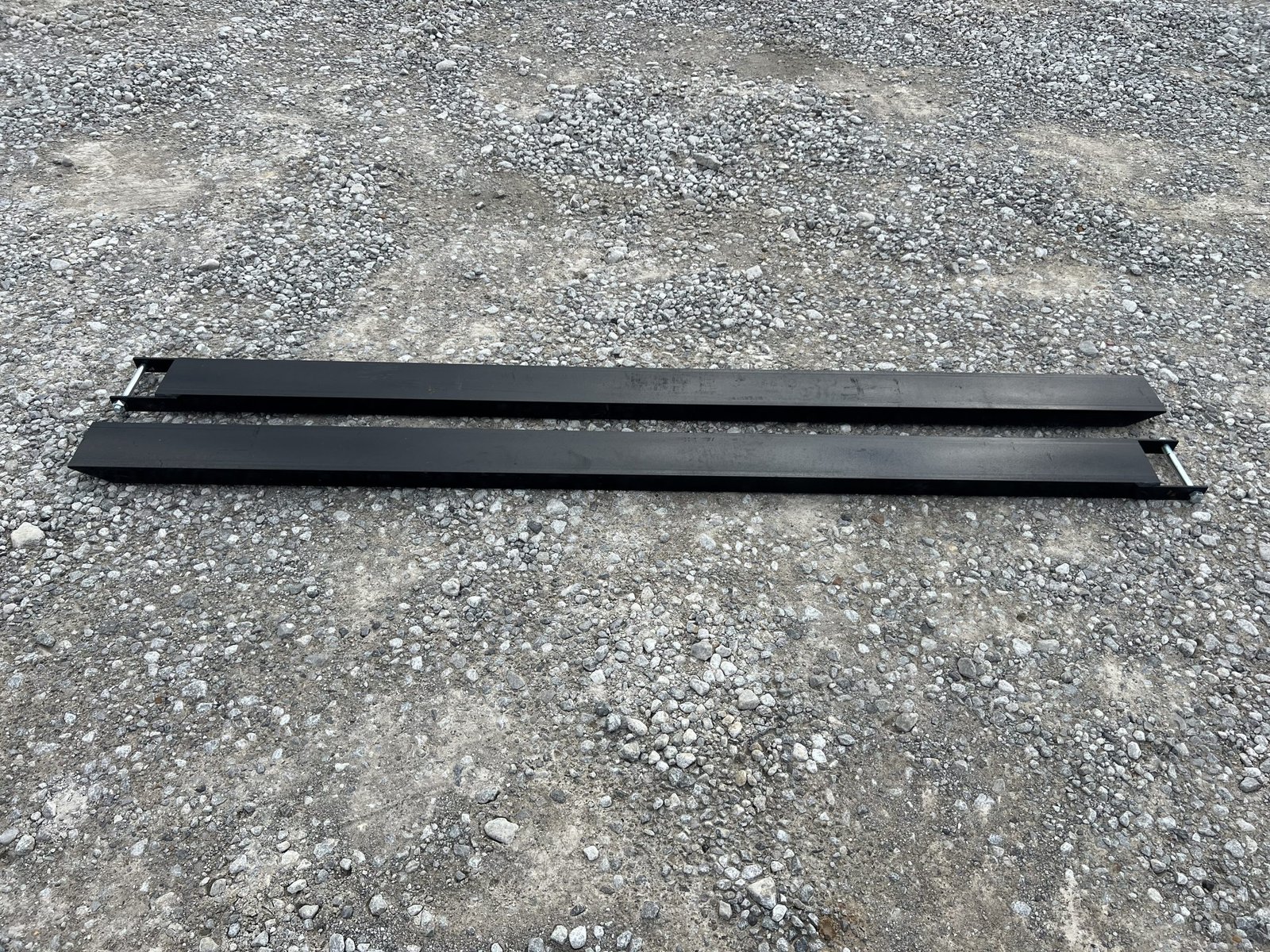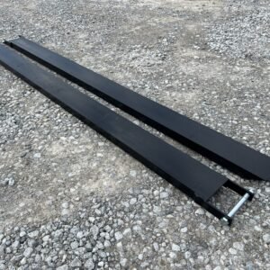This is a pair of 60″ long extensions designed to extend the length of a regular set of pallet forks . Their added length makes it easier to pick up longer and heftier materials. These extensions are an ideal asset for construction and farming jobs, allowing you to complete tasks more efficiently. The steel is 0.25″ thick for additional protection. These pallet fork extensions are compatible with forks that measure up to 4” wide. The extensions also come with a steel retaining strap to keep the extensions in place. The strap has a loop-style back that keeps the forks firmly attached, so you don’t have to worry about them accidentally falling or slipping off.
