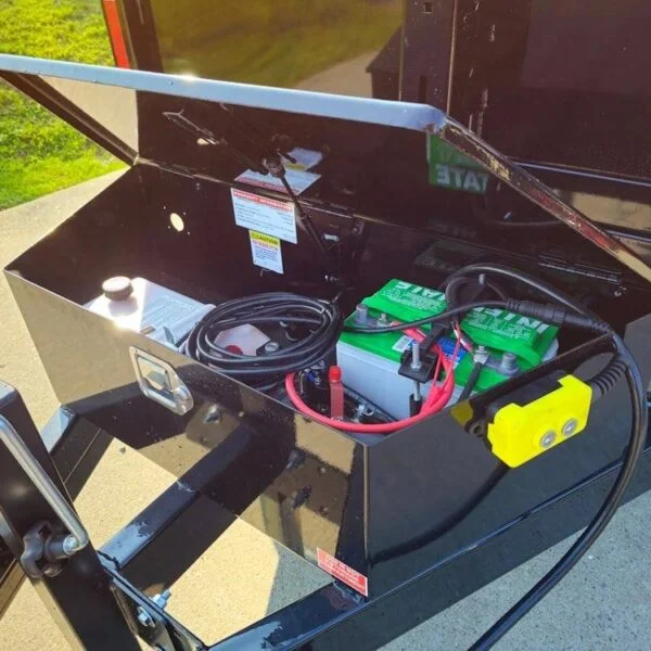 The tongue is constructed from 2″ x 5″ steel tubing, offering strength and durability.