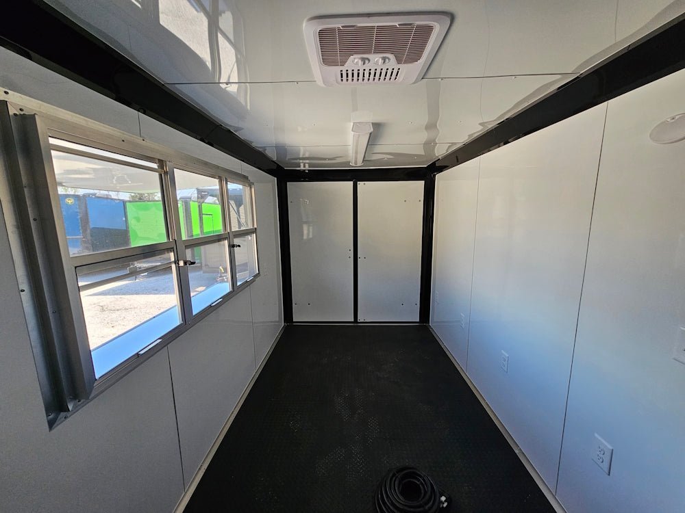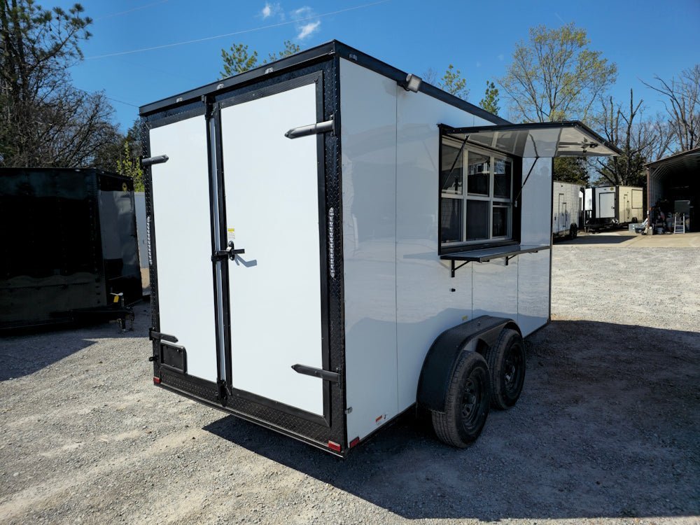 - Large 6ft Concession Window with Glass & Screens – Provides excellent visibility, ventilation, and an easy flip-up counter for fast service.