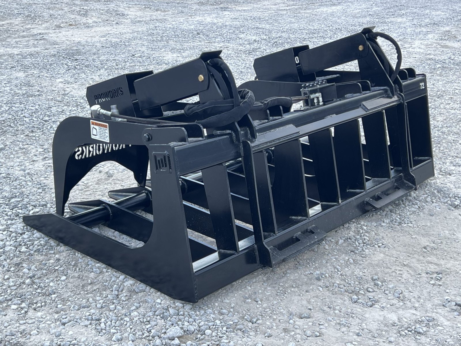 This 72″ Dual Cylinder Root Grapple Bucket is built for serious land clearing, brush handling, and debris removal. Designed for use with skid steer loaders and tractor loaders, this attachment features a very heavy-duty construction and turned-down tines for enhanced digging capability.