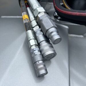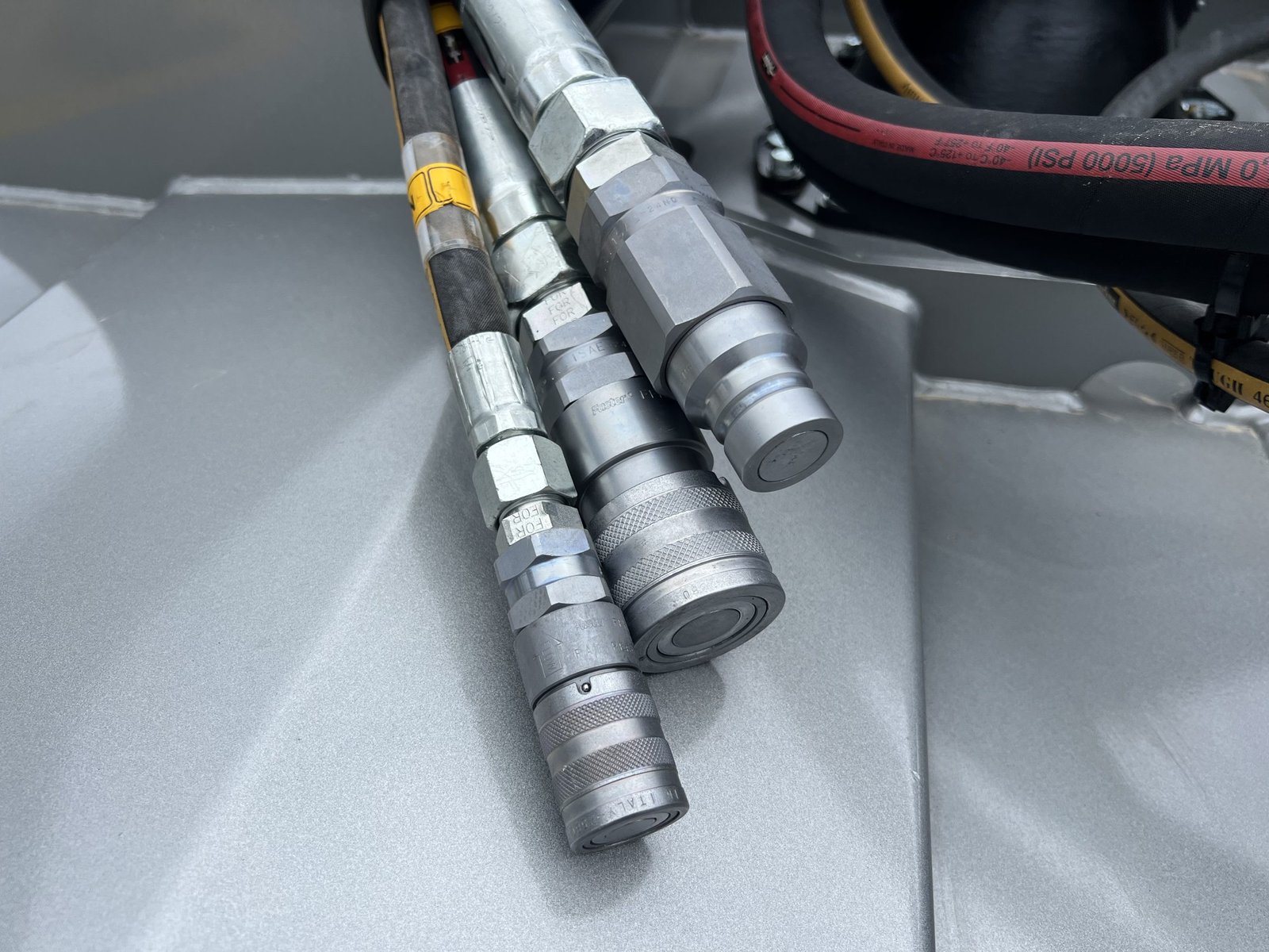 Includes hydraulic hoses with 3/4″ flat face couplers, case drain hose, and coupler