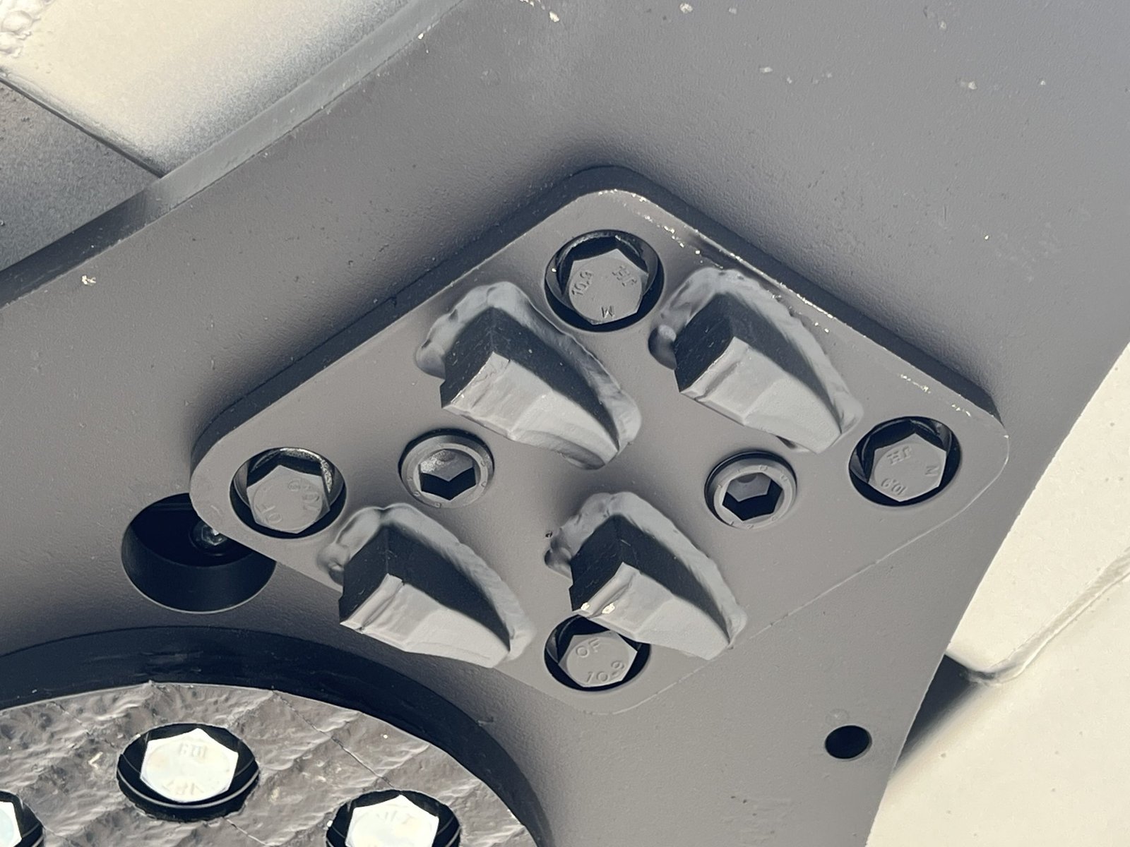 Equipped with wear-resistant interchangeable Hardox® soles for extended life