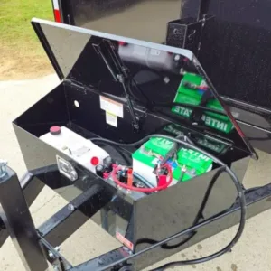 The lift system uses two 3″ x 30″ hydraulic cylinders, providing powerful dumping capabilities.