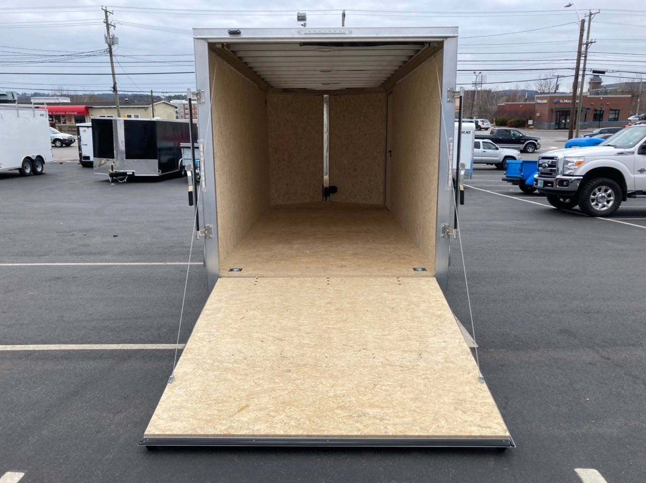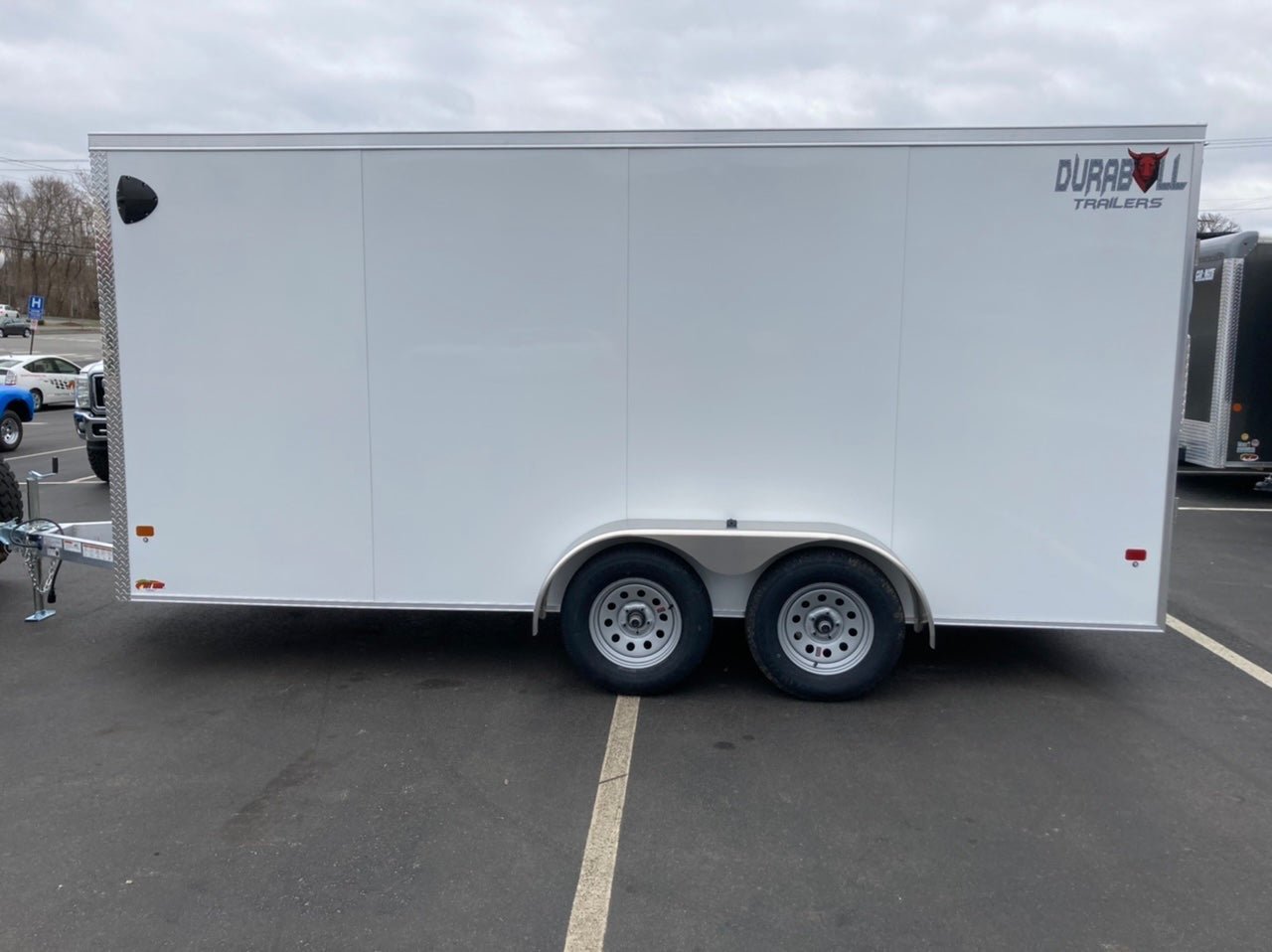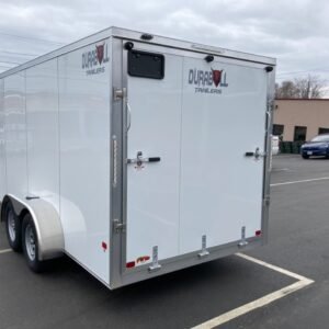 Vin- 7TE7EDD22SN000826 Durabull Trailers 7×14 Enclosed Cargo Trailer 7′ x 14′ TA Elite Series Aluminum Tube Frame 2 5/16″ coupler 24″ V-Nose Dual Axle Rear ramp door 7000 GVWR 1600# White Color Made in Merrimack, NH on Debit/Credit card dealer fee not included in price We do our best to make sure our listings are accurate. Please call us to verify options and features are correct. Prices are subject to change. ext 3 or 4 sells carmate trailers, enclosed cargo trailers, cargo enclosed trailer, trailers, utility trailers, enclosed cargo utility trailers, equipment trailers, dump trailers, enclosed trailers, cargo trailer, used trailers, new trailers, enclosed car hauler trailers, equipment trailers, dump trailer, car hauler trailer, atv trailer, utility trailer, landscape trailers, contractors trailer, boat trailer, enclosed cargo trailers, custom trailer, motorcycle trailer, dow trailer, hydraulic tilt trailer, used trailers and more trailers to fit your trailer needs. Here at Inc. We offer trailer for any need and any size. The trailers we carry use the best US steel or Aluminum for frames and walls. Some brands will offer steel, aluminum or wood studs between the outside aluminum walls and the wood or aluminum inner walls. Our heavy duty trailers will sometimes include extra cross-members under the floor for extra support when carrying heavier equipment, like Zero-Turn mowers, Ditch Witch, Kubota, John Deer, Honda, Cub Cadet, Toro, Craftsman, Huskvarna, Troy Built, and other outdoor power equipment. We specialize in Utility, Cargo, Motorcycle, Dirtbike, Side by Side, Boat, Pwc, Atv, Utv, Race & Show car or Truck, Snowmobile, Hydraulic Dump, HD Equipment, Mobile Garage, Wood Working, Contractor, Business, Deck Over, Storage, Moving,Tilt Bed, Hydraulic Tilt Bed, Mobile Office, Vendor and Concession Trailers. You can also use it for a rolling billboard! We also carry Galvanized trailers from large construction & equipment trailers to small utility & boat trailers. If you see the one your looking for, Please give us a call we can special order any trailer to fit your needs! Load Rite trailers now build galvanized trailer to move your heavy equipment! Skid Steer, Excavator, Farm, Hay, Paving equipment, Roller, Tractor, Back Hoe, Loader, if you need a trailer, we are your got to people for that special trailer to fit your needs! We offer a wide variety of sizes from 4–6, 4–8, 4–10, 4–12, 5–8, 5–10, 5–12, 6–10, 6–12, 6–14, 6–18, 7–12, 7–12, 7–14, 7–16, 7–18, 7–20, 7–22, 8–16, 8–14, 8–16, 8–18, 8–20, 8–22, 8–24, 8–26, 8–28, 8–30, 8–32, 8.5–18, 8.5–16, 8.5–18, .58–20, 8.5–22, 8.5–24, 8.5–26, 8.5–28, 8.5–30, 8.5–32, 8.5–34, 8.5–36, 8.5–38, 8.5–40, 8.5–42, 8.5–44, 8.5–46, 8.5–48, 8.5–50, 8.5–52 Most of these trailers are available as Bumper Pull, Goosneck (Goose-Neck, Goose Neck), Fifth, 5th Wheel, Single Axle, Dual Axle, Tri Axle. Some trailers will have the beaver tail built in or have dump body. Styles we offer are utility, Cargo, Car Hauler, Stacker, Wedge, Open Deck, Enclosed, Double Door, Side Man Door, Awing Door, Concession, Ramp rear Door. We can also get you horse trailer with Living Quarters! Carrying weight (# GVWR) will determine the set up that works best for you! All of the trailers we offer can or should be towed with the proper vehicle weight rating for the safest and best handling conditions on the open road. Suggested vehicles would be, light duty truck, pickup truck, dually pickup, Semi — Tractor, some cars and trucks… Check your towing capacities! Our Featured Brands are: Car Mate, Covered Wagon, Griffin, Load Rite, Wells Cargo, FT, High Country Brands we compare and sometimes work with: Belmont, PJ, Big Tex, ATC, Intech, Triple Crown, Rice, Riser, Load Max, Eagle, Liberty, Rice, Pace, Kaufman, Load Trail, Forest River, Camper, Camping, Cargo Express, Force, Featherlite, Haulmark, Thule, Mission, Cargo Pro, Cargo Mate, Destination, Blizzard, Interstate, SnoPro, Triton, Blizzard, Classic Less Less Less