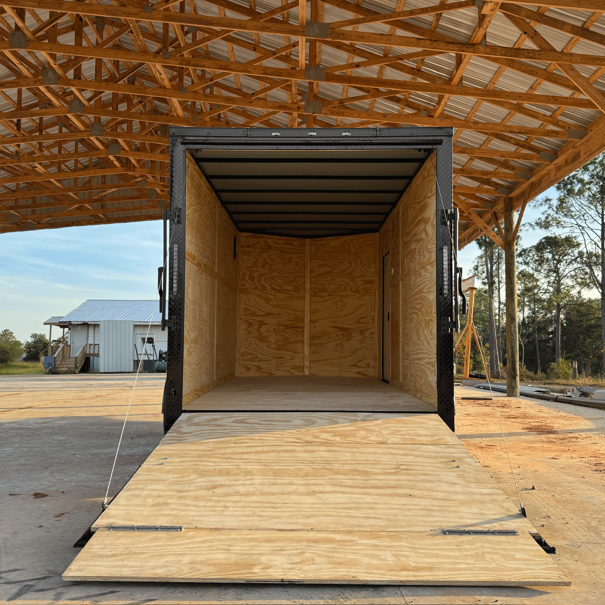 With 7’ interior height, dual 3,500 lb brake axles, and EZ-Lube hubs, this trailer tows smooth whether you’re hauling equipment, tools, ATVs, or business cargo. Inside, 3/4″ plywood floors and 3/8″ walls give you a solid, ready-to-use interior.