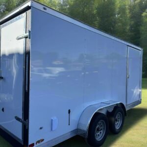 VIN 53FBE1620SF099220 Covered Wagon 7-wide trailers offer a robust and thoughtfully designed enclosed hauling solution, providing ample interior space with a 78″ height and the added benefit of a durable, leak-resistant one-piece aluminum roof. Key Features & Benefits: Superior One Piece Aluminum Roof Protection: Ensures a dry and secure interior for your valuable cargo. Convenient Lighting: Automatic dome lights activate with the large 48″ side man door for easy access in low light. Easy Entry/Exit: The wide 48″ side man door provides comfortable access to the interior. Enhanced Aesthetics & Protection: The 5″ bottom trim molding adds a stylish touch and protects the lower exterior. Sleek and Durable Exterior: The .030 exterior skin with a semi-screwless design offers a clean look and added protection. Reinforced Durability: The cobra lined rear horse shoe and tongue provide extra protection in high-stress areas. Peace of Mind: Backed by a 3-year on workmanship, ensuring quality and reliability. Spacious Interior: The 7-wide design provides ample room for various hauling needs. Durable Construction: Built to withstand the rigors of regular use. Options: Barn Rear Doors