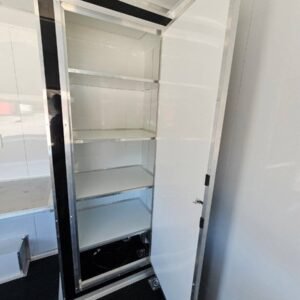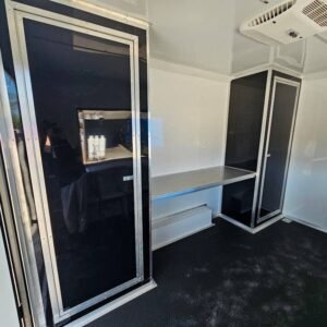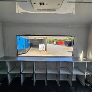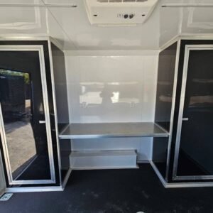 - Premium White Aluminum Wall Covering: Sleek and durable, adding a clean and professional finish to the trailer’s interior.