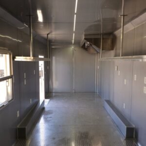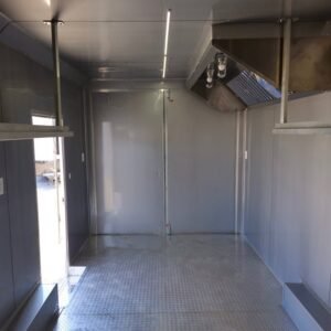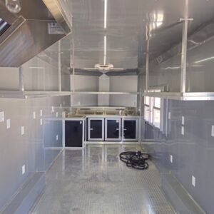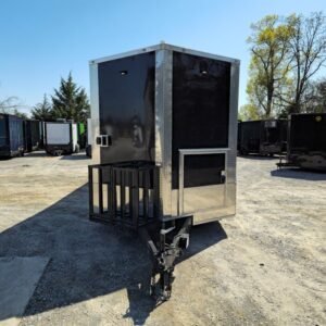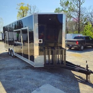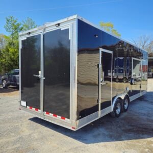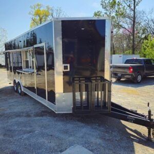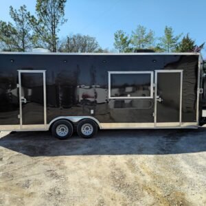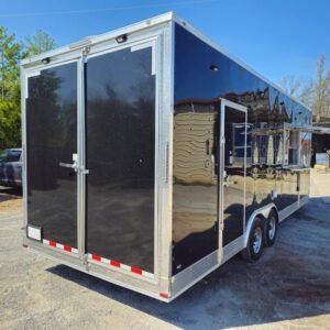 Spacious & Sturdy Build: 8.5′ x 24′ black concession trailer, designed for food events and catering.