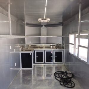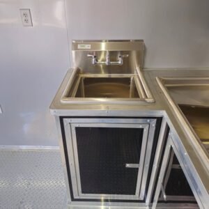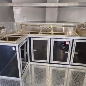 Premium Countertops: Stainless steel counters for a sleek, durable, and sanitary prep area.