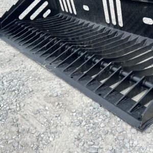 This is a new 80″ wide heavy duty skeleton / rock bucket. This attachment has the skid steer quick attach mounting system to work on a variety of wheeled and track loaders as well as newer tractors. This bucket makes sifting and sorting through a variety of soil types a breeze!